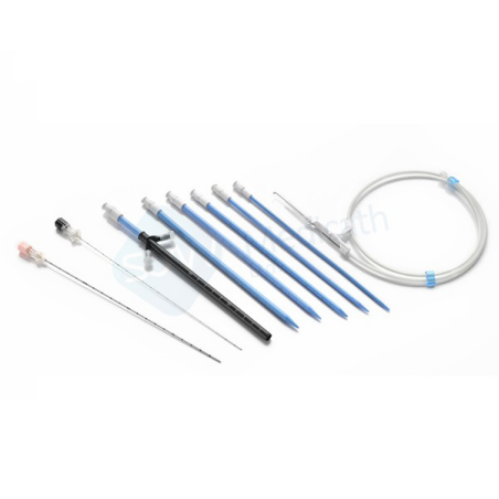 益心達生產(chǎn)的一次性使用無菌經(jīng)皮腎擴張?zhí)准?/span>提供了一種微創(chuàng)方法進行腎造口術。該產(chǎn)品由擴張鞘、擴張器、探針、導絲四個部件組成,其中探針用于穿刺,導絲作為軌道引導擴張器和擴張鞘進入皮下,擴張器用于擴張皮下入口,擴張鞘用于建立經(jīng)皮通路。益心達生產(chǎn)的經(jīng)皮腎擴張?zhí)准磾U張鞘的規(guī)格和所配置擴張器來進行劃分,可分為8F、10F、12F、14F、16F、18F、20F、22F共八種規(guī)格。